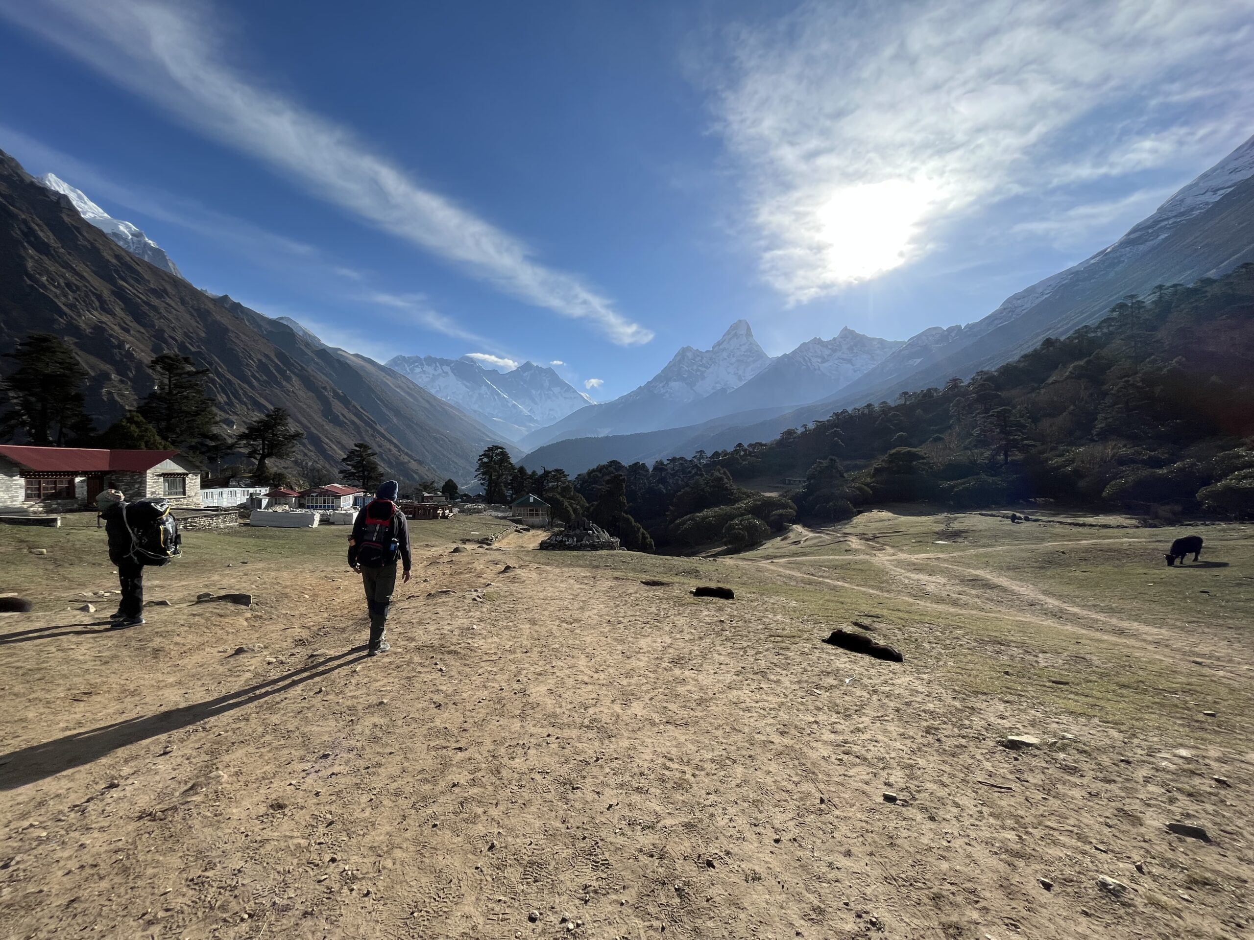This is one of the longest and most physically demanding descents of the trek. You’ll retrace your steps past Pangboche, Deboche, and stop for lunch at Phunki Tenga, where the river runs loud and cold.