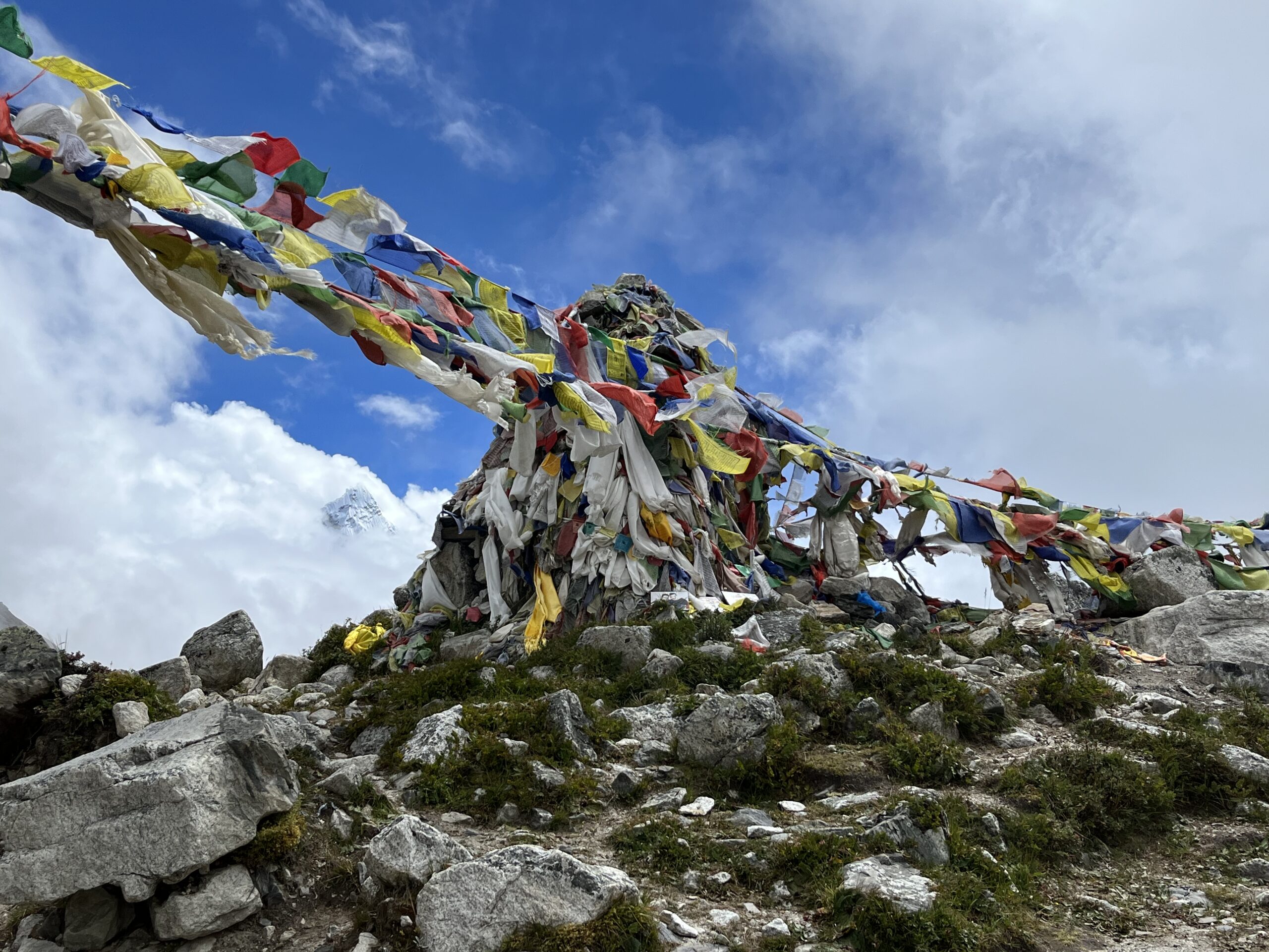 We’ll stop for lunch at Thukla (also called Dughla), right at the base of a short but steep climb. After eating, we tackle a 40-minute uphill stretch to the Thukla Pass, home to moving memorials built in honor of climbers who perished on Everest.